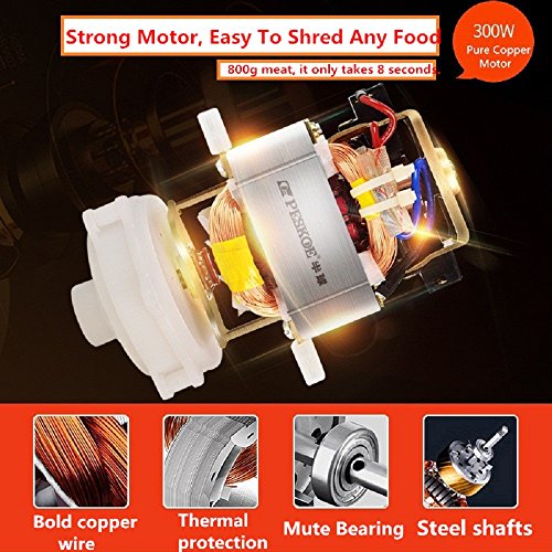 2>POWERFUL PURE COPPER MOTOR: 300W power makes it possible to grind meat in a blink,only takes 8 seconds.The lifetime of motor is more than 5 years,which not only lasting fast grinding,but also operate stably with lower noise.In addition,the motor overheating protection device makes it safe and reliable.