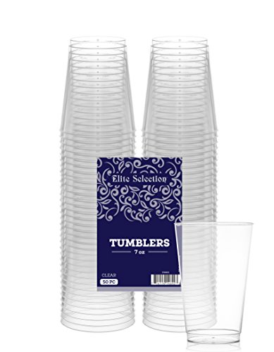 Elite Selection 7 Oz. Pack Of 50 Clear Hard Disposable Party Plastic Tumblers/Cups