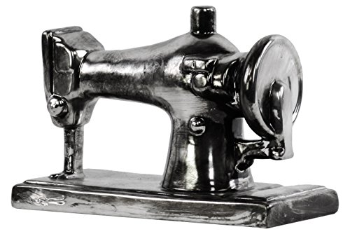 Urban Trends Ceramic Vintage Sewing Machine Sculpture, Tarnished Chrome Silver