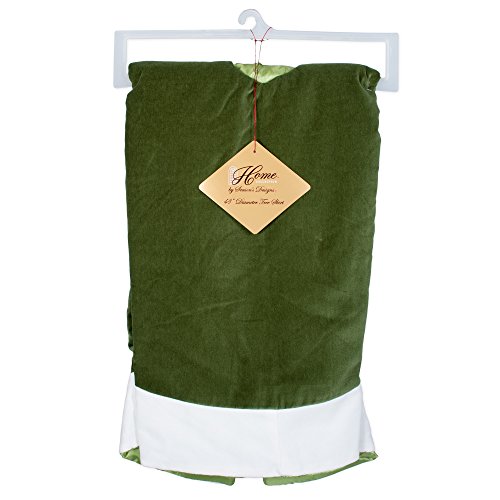 48 inch Traditional Green Velvet Christmas Tree Skirt with White Trim