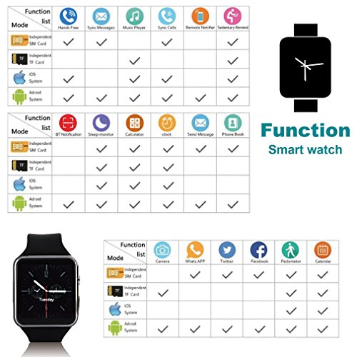 -. Title : Bluetooth Smartwatch Support Micro SIM Card with Fitness Tracker Pedometer Smart Watch for Android iPhone Samsung HTC Sony HUAWEI LG Smartphone