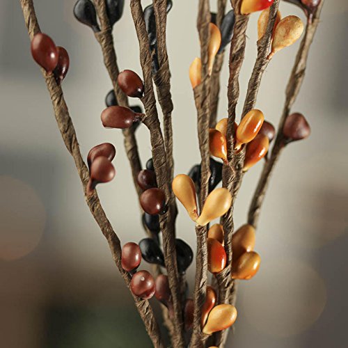 Set of 12 Hand Wrapped Harvest Orange, Brown and Black Colored Pip Berry Picks for Home Decor, Crafting and Designing