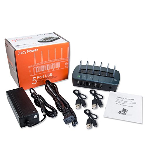 -. Title : Juicy Power 5-Port USB Rapid Charging Station with 1 QC2.0 Port Qualcomm Certified + Free 3-pack 25 cm Micro USB Charging Cable