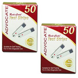 -. Feature : No Coding Required and Small Sample Size / For use with Advocate Redi-code Plus Non-Speaking and Speaking Meters / Alternate Site Testing Approved / Accurate & Easy to Handle / Two boxes of 50 test strips each