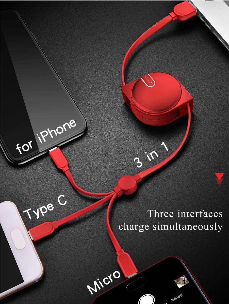 Feature:3 in 1 For iPhone & Micro USB & Type c