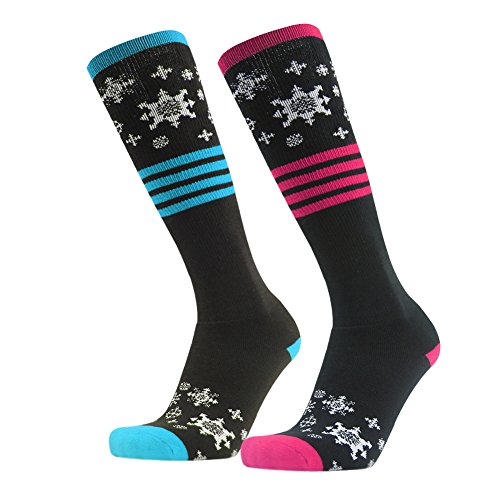 This colorful and novelty knee high snow performance sock is for girls,with detailed Snowflake images.
