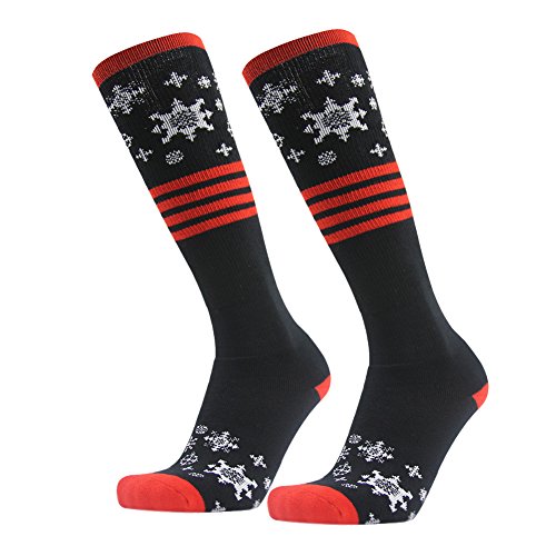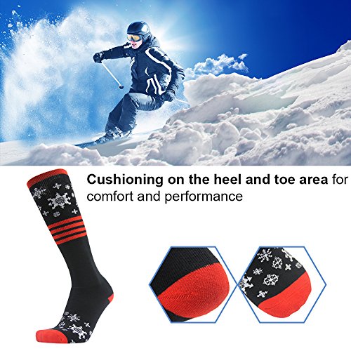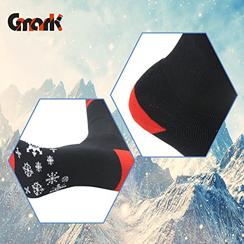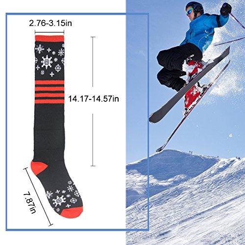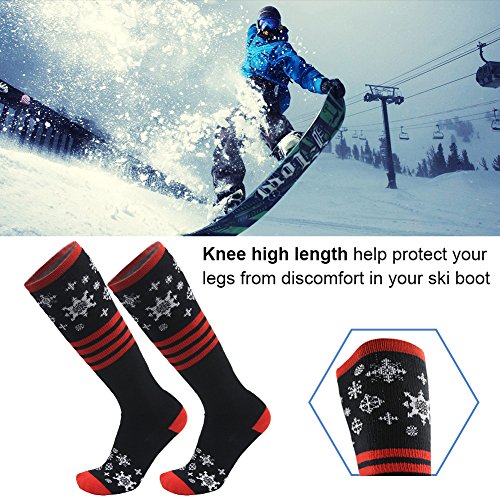 MULTI PERFORMANCE: High percentage of cotton provides added comfort and enhanced durability, keeping your feet warm and cozy in cold winter. Breathable and flexible Ski Socks with moisture wicking, antibacterial and odor-free properties. The elastic bands at the calf prevent compression against your legs and help boost blood circulation. High quality Snowboard Cotton Socks with reasonable price and excellent post-sale. Super Light and Soft Gift Socks that fits most adults' size.