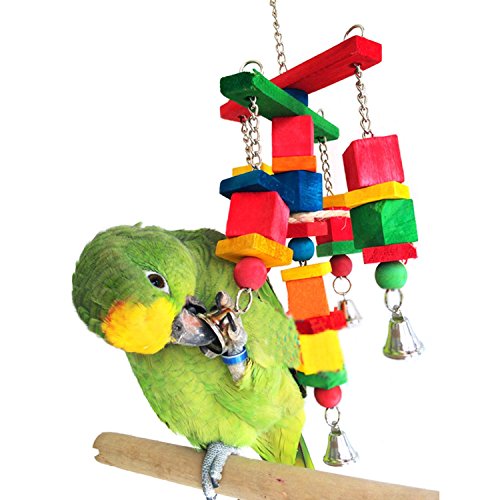 Rypet Bird Wood Toys, Moveable Colorful Wood Bird Cage Toys for Parakeets with Bells