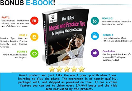 THE SEARCH IS OVER: When you order now, you will be protected by our not one, but 2 YEAR WARRANTY and WORLD-CLASS customer service! Because we care, as an added bonus, your Tempi metronome comes with a FREE E-BOOK and FREE MICRO FIBER CLEANING CLOTH to help propel your success! Click add-to-cart now and improve your musical skills today!