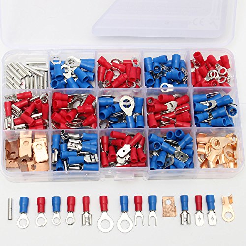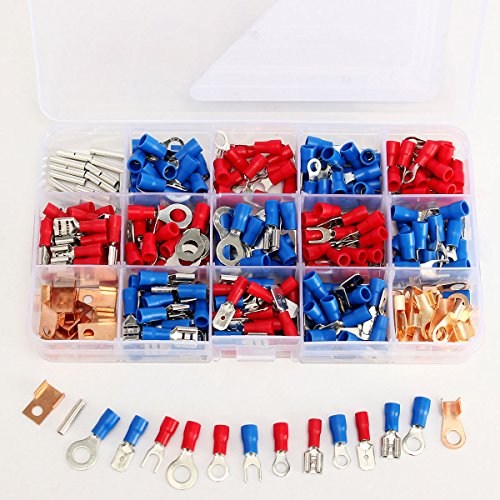 ■ SAFETY: Wire Connectors Butt Spade Ring Fork Assortment, Durable Insulated Crimp Cable Lugs, provides a secure connection between two leads without soldering.