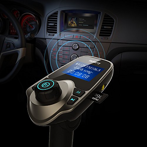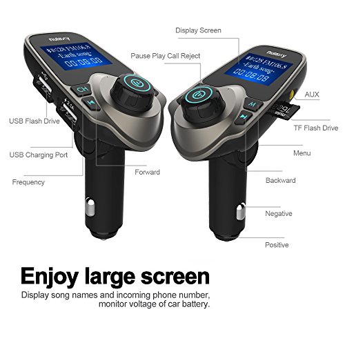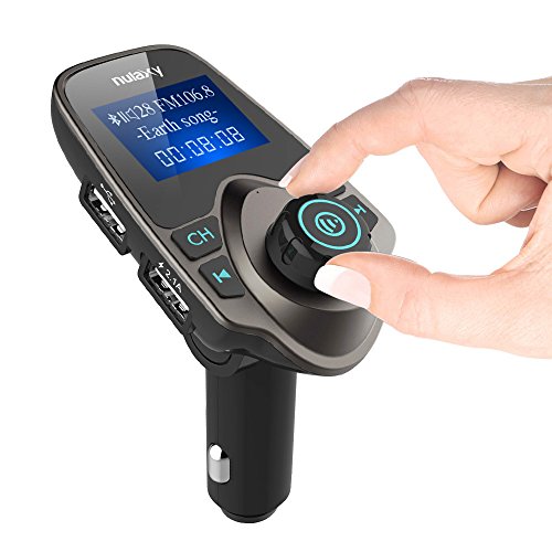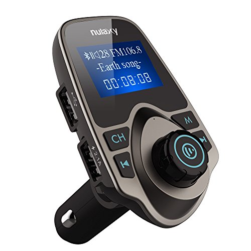 FM Transmitter, Nulaxy Wireless Bluetooth FM Transmitter Car Kit Radio Receiver W 1.44 Inch Display 2.1A USB Car Charger MP3 Player Read Micro SD Card and USB Flash Drive-Brown