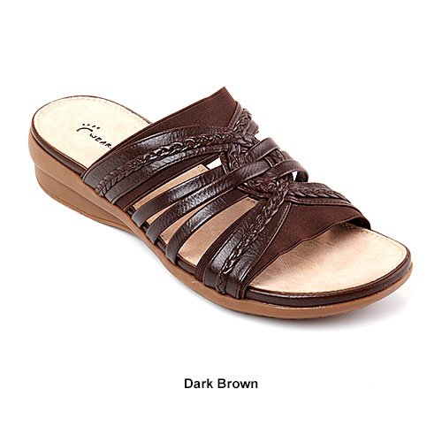 Product Description1.25 inch rear and .75 inch fron. Open toe, Elastic on upper for comfort and fitted stretch. Colors are light and dark brown.0