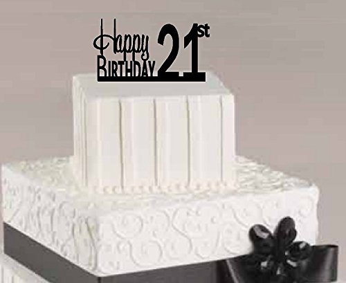CakeSupplyShop Item#AE-124 Happy 21st Birthday Agemilestone Elegant Cake Topper