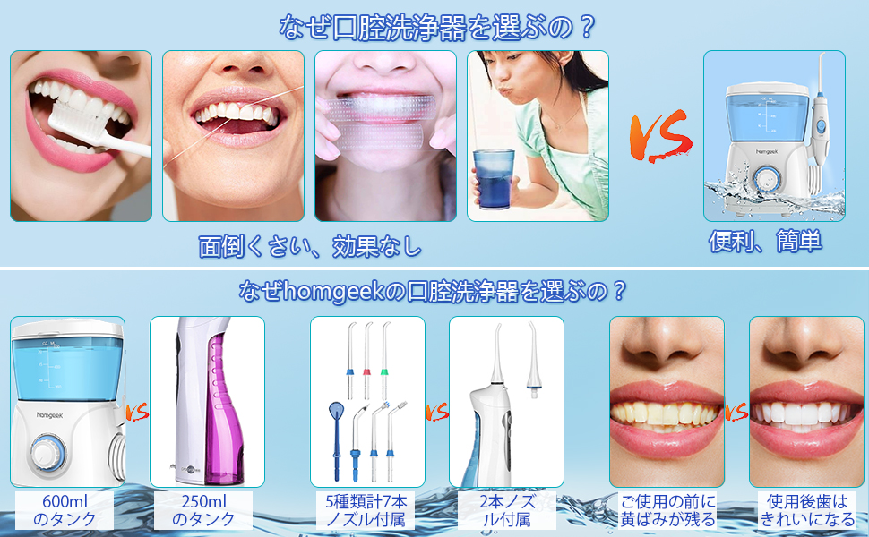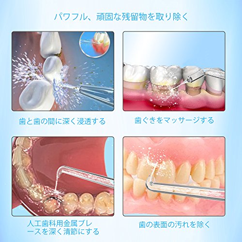 弊社のジェットウォッシャーは特定の強力ジェット水流で、歯と歯の間の食べカスや歯垢(プラーク)を水圧により取り除くアイテムです。ジェット水流は歯間などにこびりついた歯垢を洗い落とせるほど強力です。水流によって歯ブラシ、糸ようじなどが届きにくい箇所までしっかり洗浄でき、歯周ポケット洗浄、舌の洗浄、歯ぐきケア、歯垢除去などに役に立ちます。