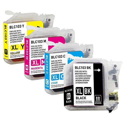 G&G Compatible Brother 103 Ink Cartridges (High Capacity LC-101) for MFC-J6920DW, MFC-J6520DW, MFC-J470DW, DCP-J152W, MFC-J470DW, MFC-J870DW and other Printers - 4 Pack