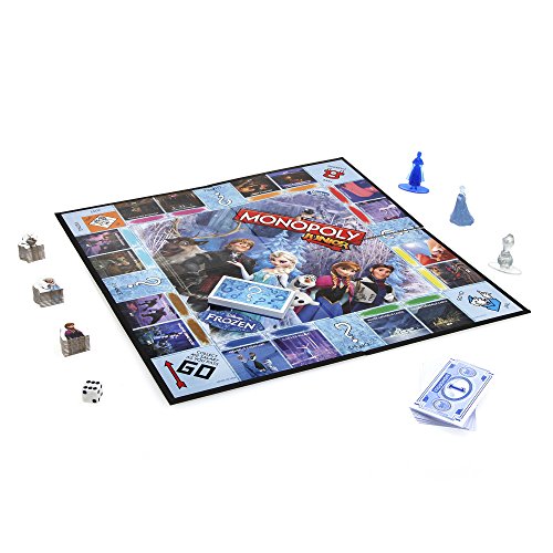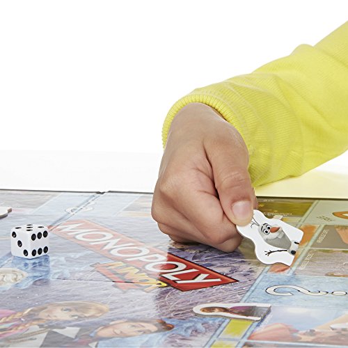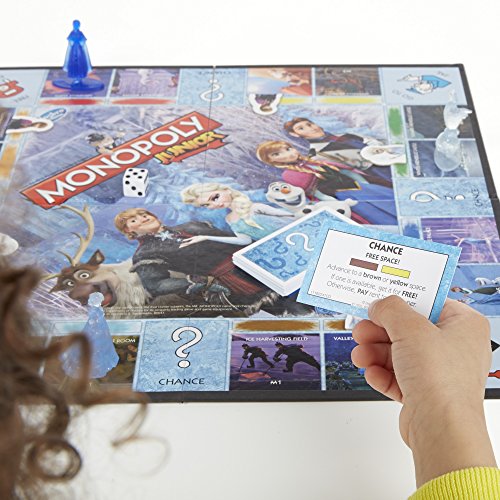 - Feature : Fast-trading Monopoly Junior game features characters from Frozen / Game is like the classic Monopoly game but easier for kids / Exclusive Frozen movers and properties are fun places in Arendelle / Single banknotes keep the transactions quick and easy / Includes gameboard, 3 character movers, 24 Chance cards, 36 Character markers, 90 x M1 banknotes, 1 die and instructions