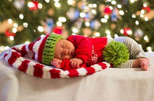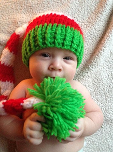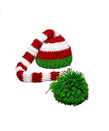 -. Title : Eyourhappy Christmas Green Red Crochet ELF Long Tail Pom-pom Hat for Baby Toddlers