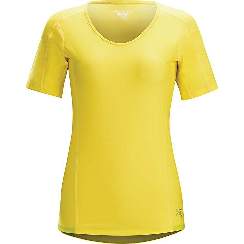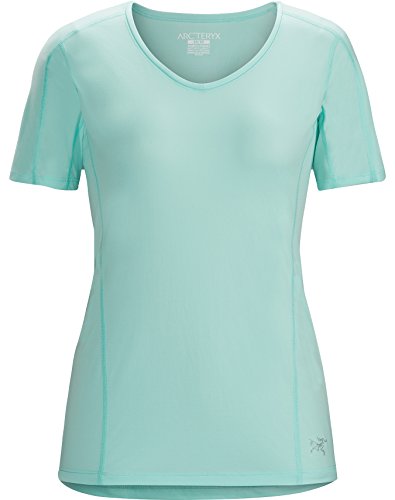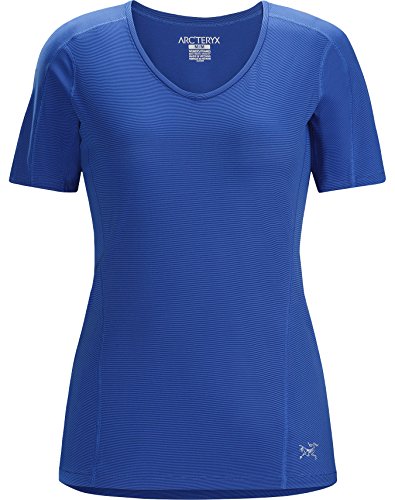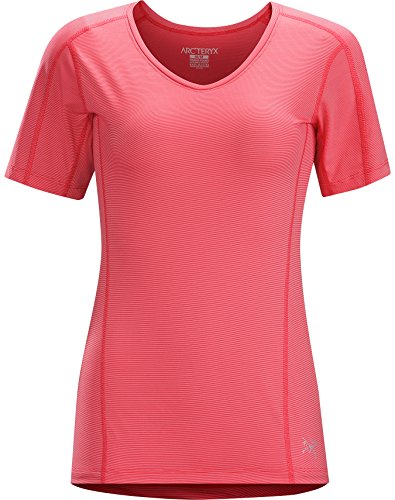 FEATURES of the Arcteryx Women's Motus Crew Short Sleeve Top Phasic SL fabric provides exceptional moisture management Shallow V-neckline increases air flow Flatlock construction reduces chafing Reflective blades on sleeves enhance visibility in low lightFeature