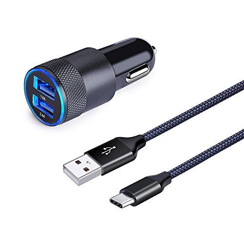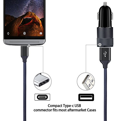Ailkin Type C Adaptive Fast USB Car Charger for Samsung Galaxy S8/S8 Plus, LG G5/V20, Google Nexus, Dual Port Power Charger Adapter with 6ft USB C Nylon Braided Cable
