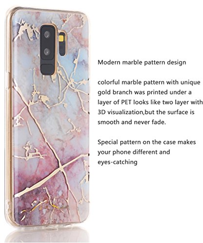 -. Feature : Compatible Model: Samsung Galaxy S9 Plus/S9+(2018 Released) only, NOT for Samsung Galaxy S9 (2018 Released) / Material: Hard back coating provides shockproof and scratch proof protection.PET material makes the case anti-fingerP.R.Int.Soft TPU raised edge around the front lip for tough face-down protection. / Modern marble pattern design,colorful marble pattern with unique gold branch was P.R.Inted under a layer of PET,looks like two layer with 3D visualization,but the surface is smooth and never fade. / Easy allows to access to all functions.Precise cutouts ensures all buttons and ports at exact locations.Specially Raised cutouts design protects the core openings of your phone. / Please let us know if you have any issue about our products,we take full ownership and responsibility for the quality of our products and will do our best to solve your problem quickly and efficiently!Our Goal:100% customer satisfaction.