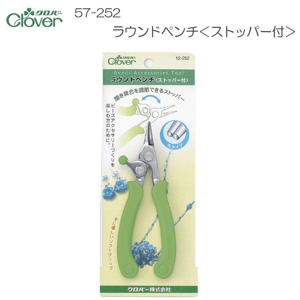 ビーズアクセサリーを楽しむ方のために。開き具合をストッパーで設定すると、繊細な作業がらくにできます。 製造国:日本 素材・材質:本体:ステンレス鋼樹脂部:エラストマー 商品サイズ:全長:約135mm ※サプライヤー直送品 ご注文後2~3営業日後の出荷となります【商品名】クロバー ラウンドペンチ(ストッパー付) 57-252
