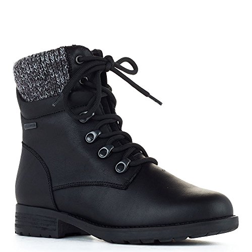 Product DescriptionWarm and stylish, the Derry Ankle Boot features a waterproof lace up silhouette with a knit collar. Lace up closure Removable memory foam insole Anti slip outsole Temperature rated to -11 degrees PVC free.0