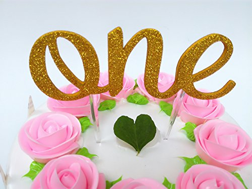 ✔ The Golden Color "One" Birthday Cake Topper Lettering: 6.0"(W) x 2.1"(H), the Picker: 3.2"(H). Ideal For 8" Birthday Cake Celebration. Premium Quality Gold Glitter Stock Gives A Heavy Duty Feel And Prevents Shedding From The "One" Birthday Cake Topper Lettering.