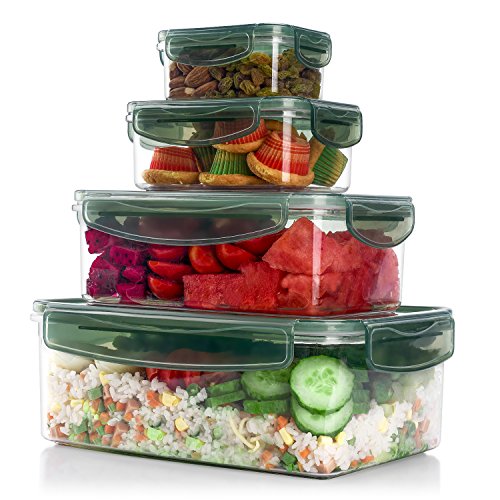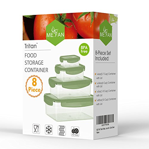 ME.FAN Tritan Plastic Food Storage Containers, Airtight Nested Containers Set with Lids, 100% Leak Proof, BPA Free - FDA Approved - Rectangle 8-Piece Set - Dark Green