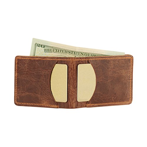 -. Feature : 100% GOATSKIN LEATHER is supple yet tough as can be! Goatskin is an amazing leather - insanely soft to the touch yet durable beyond belief - our wallets can take anything you throw at them, and will look even better with age! Dimensions Closed 3-7/8" x2 7/8"| Open 7 ½" 2 7/8" - Approx weight .10 pounds / TINY BI-FOLD DESIGN - SLIM and SIMPLE - designed to easily distribute credit cards and stay flat. Fit up to 8 credit cards as well as cash in the small bill compartment - This wallet features 2 interior pockets as well as 2 "fast grab" front pockets for easy access to your most used cards. / QUALITY UNSURPASSED: Handsome folds of leather, fine stitching, and thoughtful curves make a storage compartment worthy of the money you work so hard to earn - one of a kind. Proudly designed, cut, and MADE IN THE USA! / HEAVY DUTY NYLON THREAD STITCHING - Durability for decades of wear and tear / STYLISH AND SLEEK: Our wallets will look at home on Wall Street - In LA - On the Ranch - and of course right in your pocket! Backed by our 100 year warranty - rest assured our leather wallets were built to last.