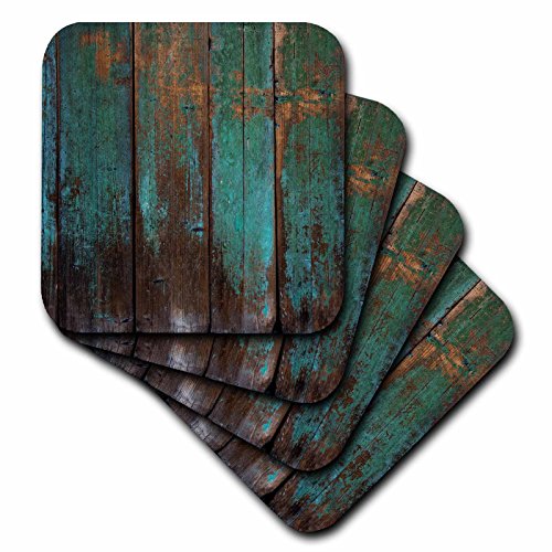 3D Rose Teal Distressed Country Wood Effect Soft Coasters