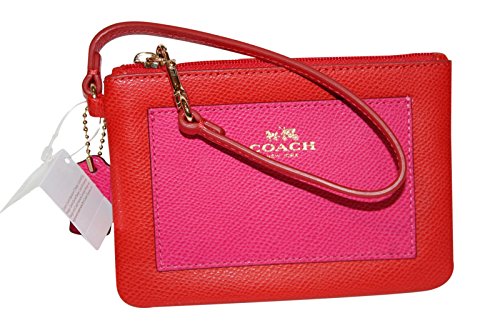 -. Title : Coach Crossgrain Leather Small Wristlet 53142 Cardinal Pink Ruby