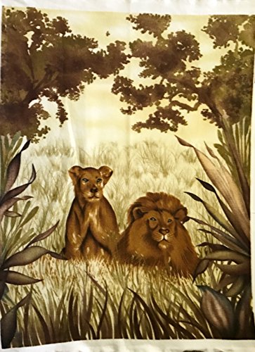 "King of the Jungle" Lion & Lioness Double Sided Fleece Fabric Panel (Great For Quilting, Sewing, Craft Projects, Throw Blankets, Wall Hangings, and More) 48" x 60"