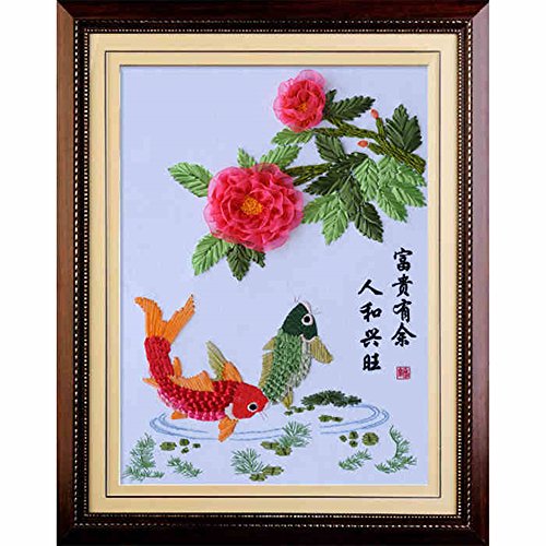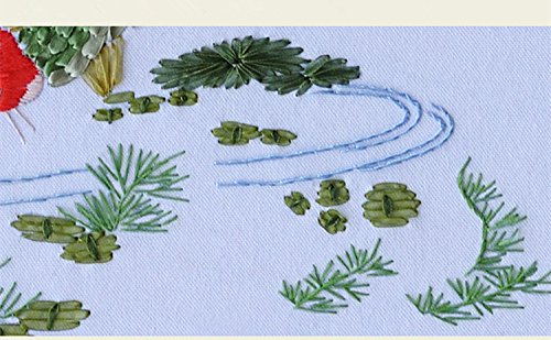 Silk Ribbon Embroidery Kit Handmade for Beginner Oriental Wall Hanging Art Asian Decoration (No frame)