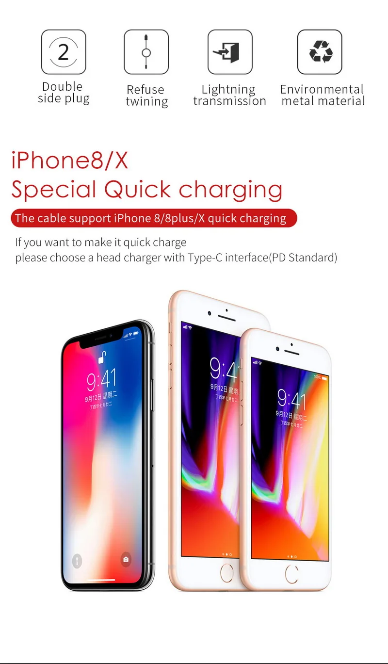 Feature:For iPhone 8 Cable For iPhone X Macbook