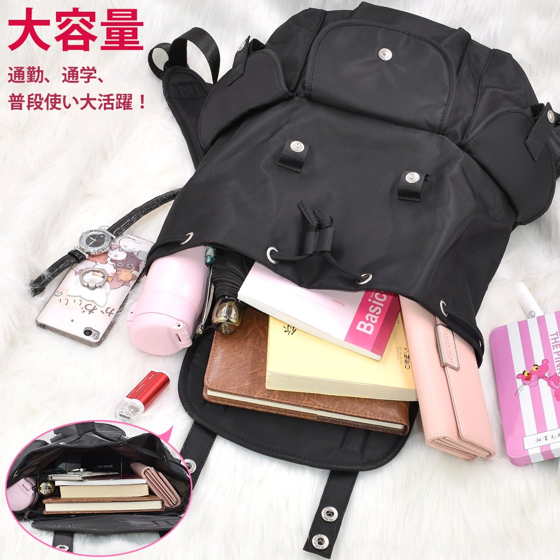 Nylon backpack which can be used casually or tastefully can be used in any scene