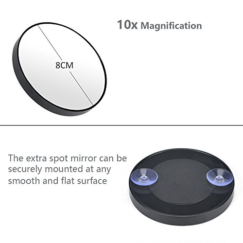 【FUNCTIONAL MAGNIFICATION MIRROR】: The main body is a regular mirror, but a small 10X magnification mirror can be attached the front to let you see all of the finer details and features of your face for a photoshop-like finish.