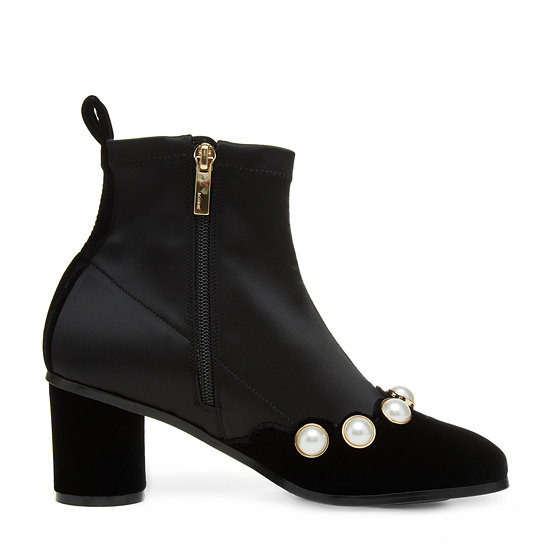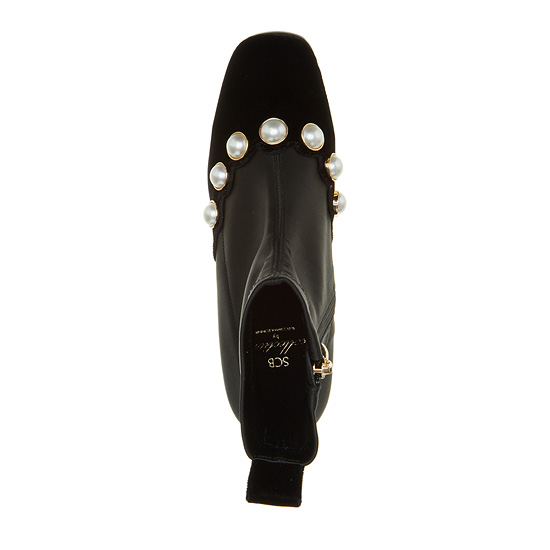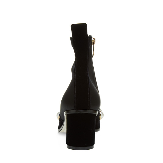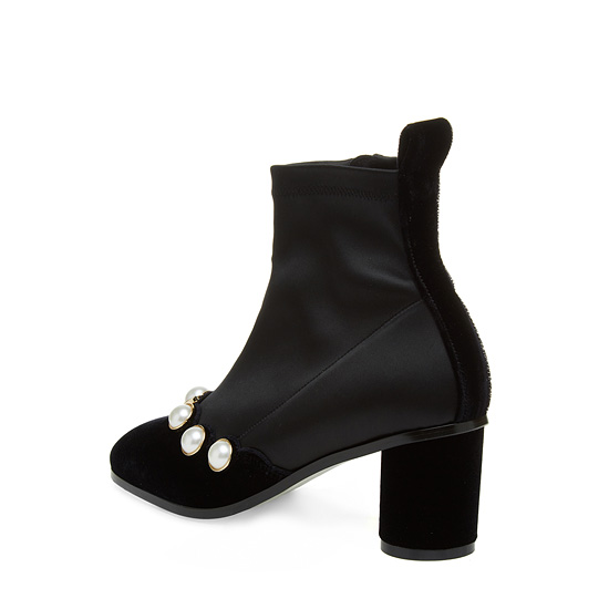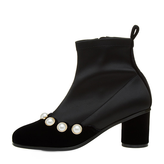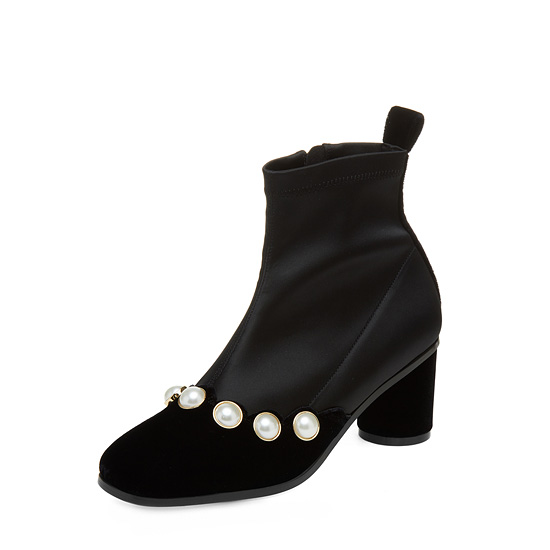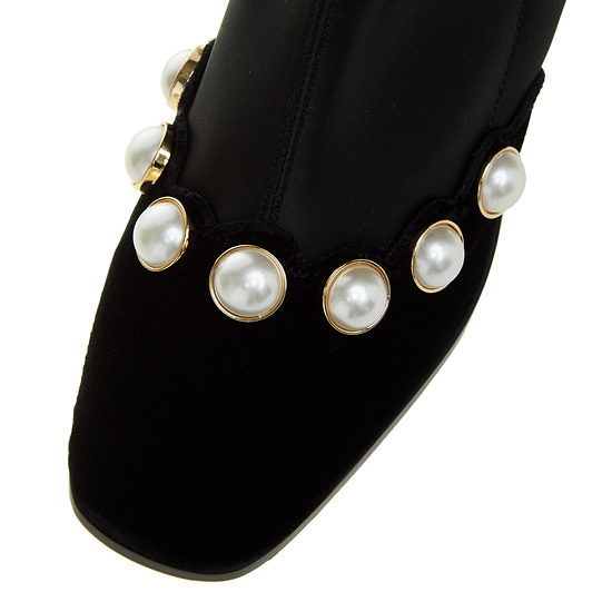 - 젯 블랙의 벨벳 소재에 진주 장식 라인으로 세련된 아이템.