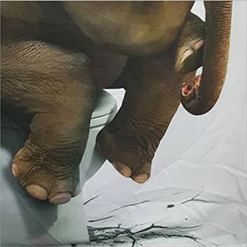 Shower Curtains Waterproof Fabrics Bath Curtain Set Pattern with Free 12 Hooks,180x180cm,Elephant Sit On Toilet
