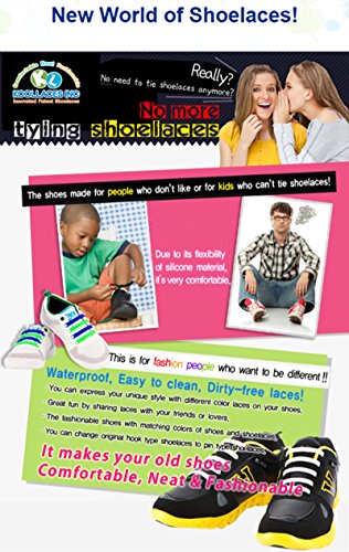 -. Title : Koollaces No Tie Elastic Slip on Silicone Shoelaces,hook Type,2set=16 Pcs