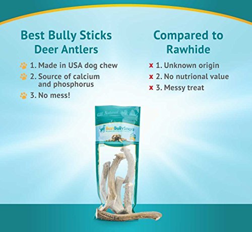 -. Binding : Misc. -. Brand : Best Bully Sticks -. Label : Best Bully Sticks -. Manufacturer : Best Bully Sticks -. PackageQuantity : 1 -. ProductGroup : Pet Products -. ProductTypeName : PET_SUPPLIES -. Publisher : Best Bully Sticks -. Studio : Best Bully Sticks -. Title : Grade-A Elk and Deer Antler Dog Chews by Best Bully Sticks (1 Pack) Sourced in the USA