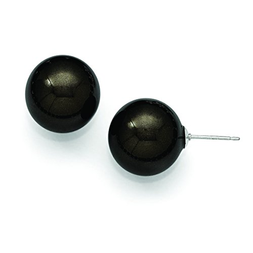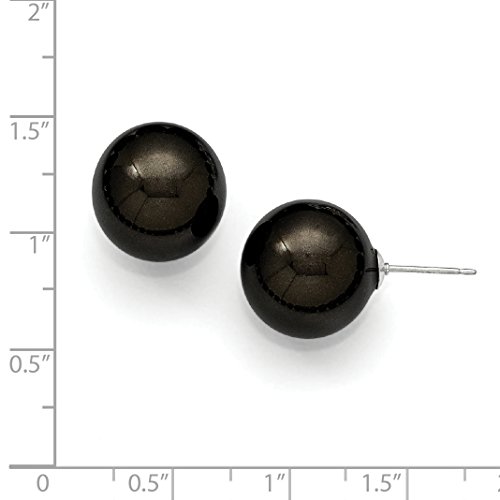 ICECARATS DESIGNER JEWELRY 925 STERLING SILVER MAJESTIK 14 15MM ROUND BLACK SHELL BEAD STUD BALL BUTTON STUD EARRINGS