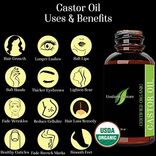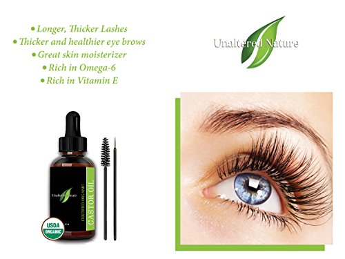 -. Binding : Misc. -. Brand : Unaltered Nature -. Feature : A COMPANY WITH A SOCIAL MISSION: 10% of ALL revenues will be donated to child cancer charities. / HAIR CARE BENEFITS - 100% PURE CASTOR OIL provides astonishing benefits for the hair on your scalp to your eyebrows and eyelashes. Our castor oil customers have used our product for many hair treatments including: Hair growth, as a moisturizer, split end repair, treat dandruff & dry scalp, hair softening, repairing healthy hair naturally, and aid in thicker hair growth. / SKIN CARE BENEFITS - Pure castor oil has natural antibacterial and anti fungal properties. High in Vitamin E, which is highly regarded for its beautifying effects helping to reduce wrinkles and fine lines, treat acne and nourishing dry skin. / POWERFUL NUTRIENTS - Ricinoleic Acid, Oleic Acid, Linoleum Acid, and other highly beneficial fatty acids are found in caster oil which provide endless benefits for your hair and skin. Castor oil is excellent for treating fingernails, cracked or brittle nails, and nail strengthening. / 100% GUARANTEE OR YOUR MONEY BACK - If you are not 100% satisfied with your purchase of our 100% organic caster oil for any reason, we will refund your purchase with no questions asked. Try the Our item for 30 days and see the results. Why offer this guarantee? Because we know that you will love our items and will become a lifetime customer (check out our reviews). Please tell your friends when you see the amazing results after use! -. IsAdultProduct : 0 -. Label : Unaltered Nature -. Manufacturer : Unaltered Nature -. ProductGroup : Beauty -. ProductTypeName : BEAUTY -. Publisher : Unaltered Nature -. Studio : Unaltered Nature -. Title : Premium Pure Organic Castor Oil - 100% USDA Certified Pure Cold Pressed Hexane free for Eyelashes Growth Serum, Natural Eyebrows & Eyelash Growth - Free Set of Mascara Brush & Eyeliner Applicator