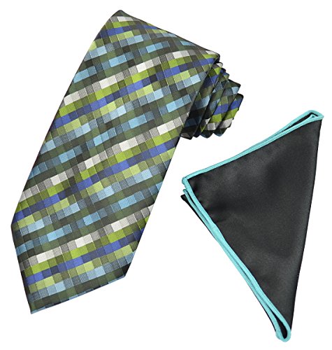 (Paul Malone)/Accessories/Ties/DIRECT FROM USA/Green Checked Men's Tie and Pocket Square Set