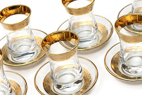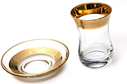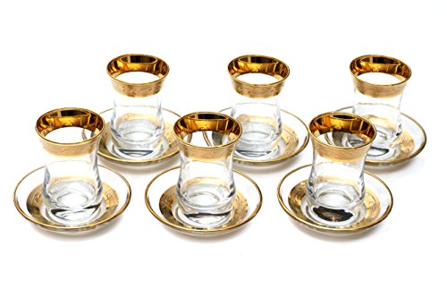 (Pharpar)/Kitchen Dining/Tableware/DIRECT FROM USA/Original Turkish Tea Glasses with Saucers Sets (6 Pcs) (Gold) 3 OZ