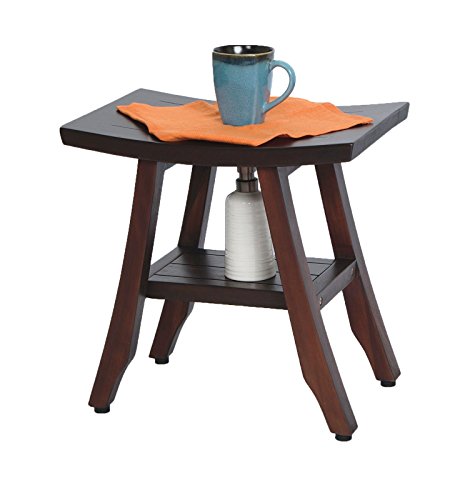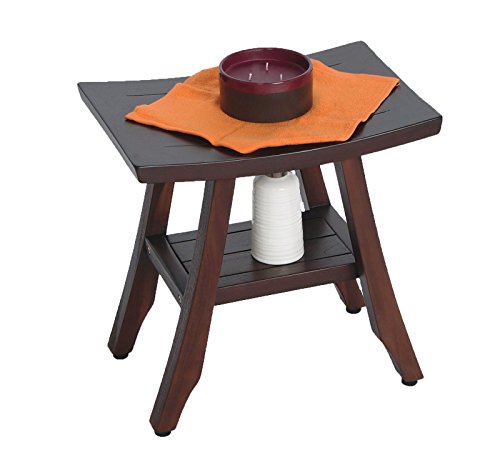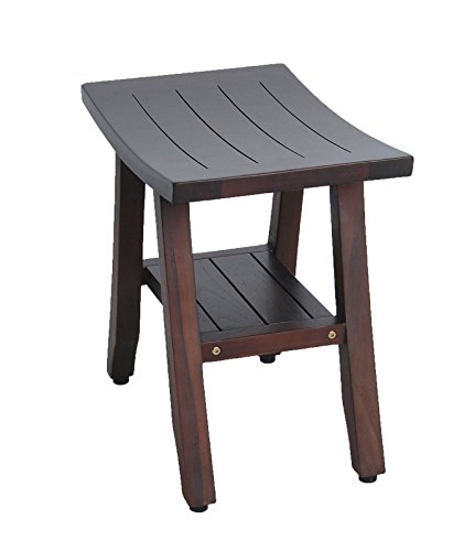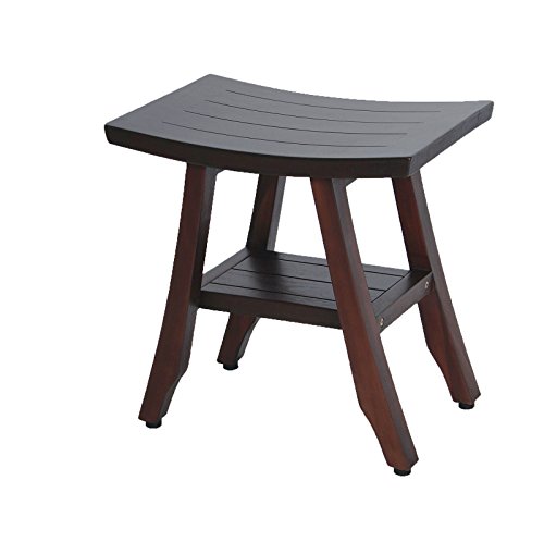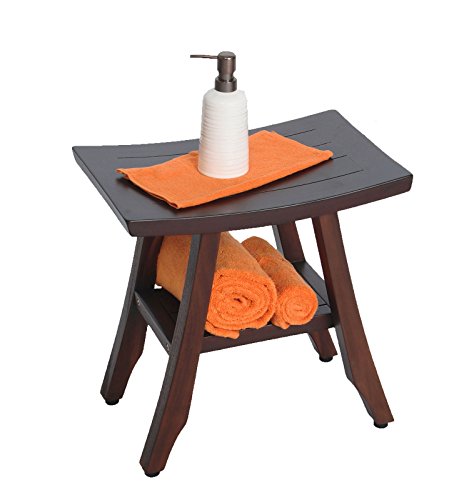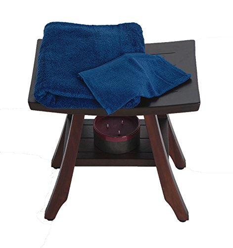 18" Patented- Satori Eastern Styled Solid Teak Shower Bench with Shelf