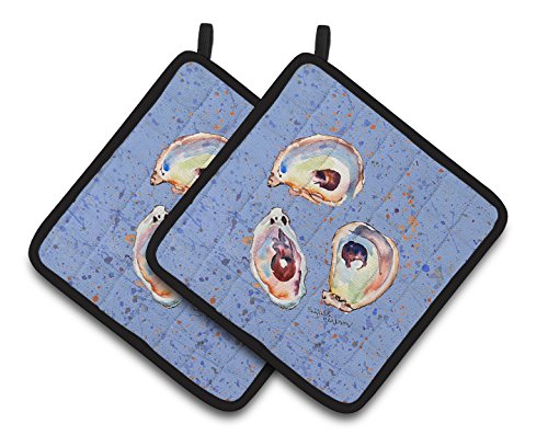 Caroline's Treasures Oyster Pair of Pot Holders 8456PTHD, 7.5HX7.5W, Multicolor