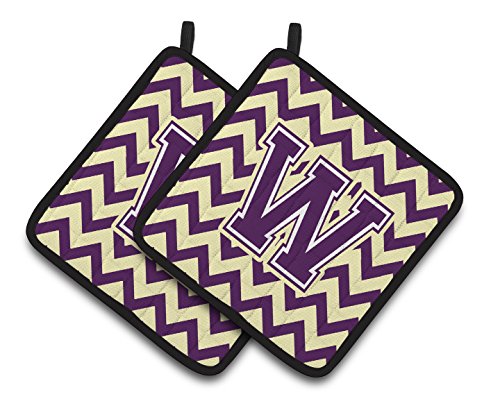 Caroline's Treasures Letter W Chevron Purple & Gold Pair of Pot Holders CJ1058-WPTHD, 7.5HX7.5W, Multicolor