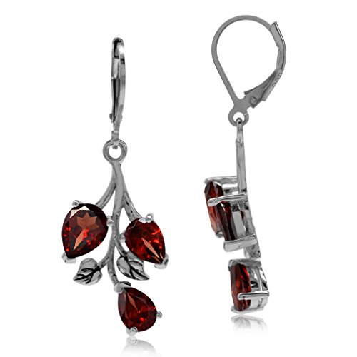 5.7ct. Natural Garnet 925 Sterling Silver Leaf Leverback Dangle Earrings