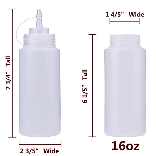 (3 pack) 16 oz THETIS Homes Plastic Squeeze Squirt Condiment Bottles with Twist On Cap Lids - Perfect For Syrup, Sauce, Ketchup, BBQ, Condiments, Dressing, Arts and Craft, Workshop, Storage, and More