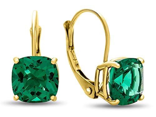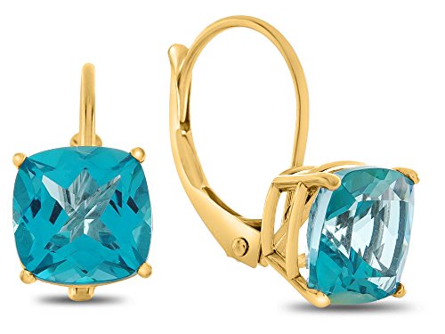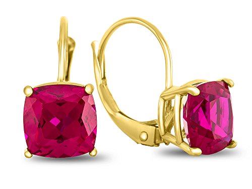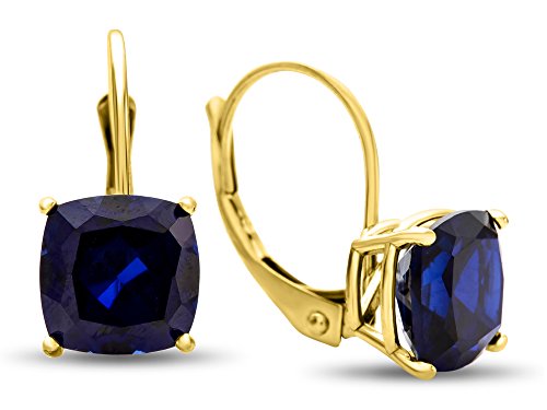 The beautiful 7x7mm Cushion Created Sapphire Lever-back Earrings, crafted in 10 kt Yellow Gold . This beautiful design is set with 2 stones prong set dark blue Cushion Created Blue Sapphire eye clean clarityWarranty: - This item is covered by our exclusive Silver Shield Lifetime Warranty. This exclusive lifetime coverage is offered ONLY by Finejewelers so please shop with confidence, our quality is guaranteed for life!Feature
